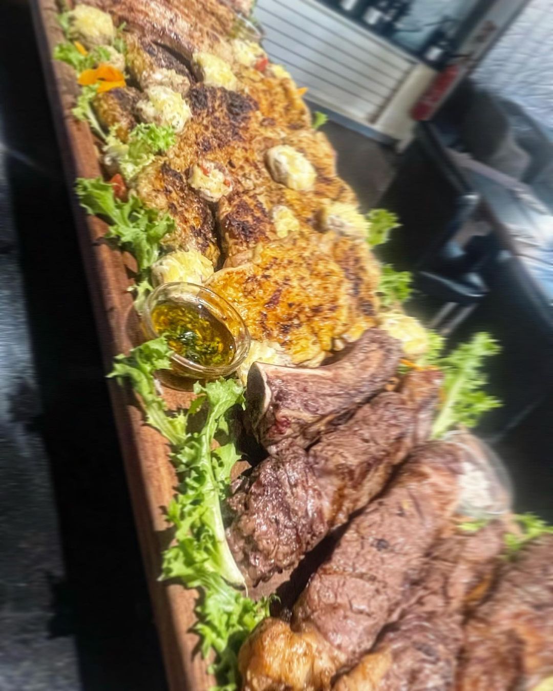 CHEZ BOUCHER un nom qui rappel le fait d'aller chez un ami, chez un copain, l'atmosphère familiale se juxtapose sans effort à la cuisine, qui propose des plats essentiellement composé de viande grillé cela rappel aussi le côté convivial du barbecue. Vous venez chez nous pas seulement pour savourer un beau morceau de viande grillé mais aussi pour partager un vrai moment de convivialité.
